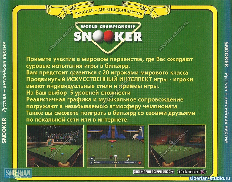 633. World Championship Snooker Переводчик — вероятно, «Electronic Pirates». Издатель — «XXI век». | | | |